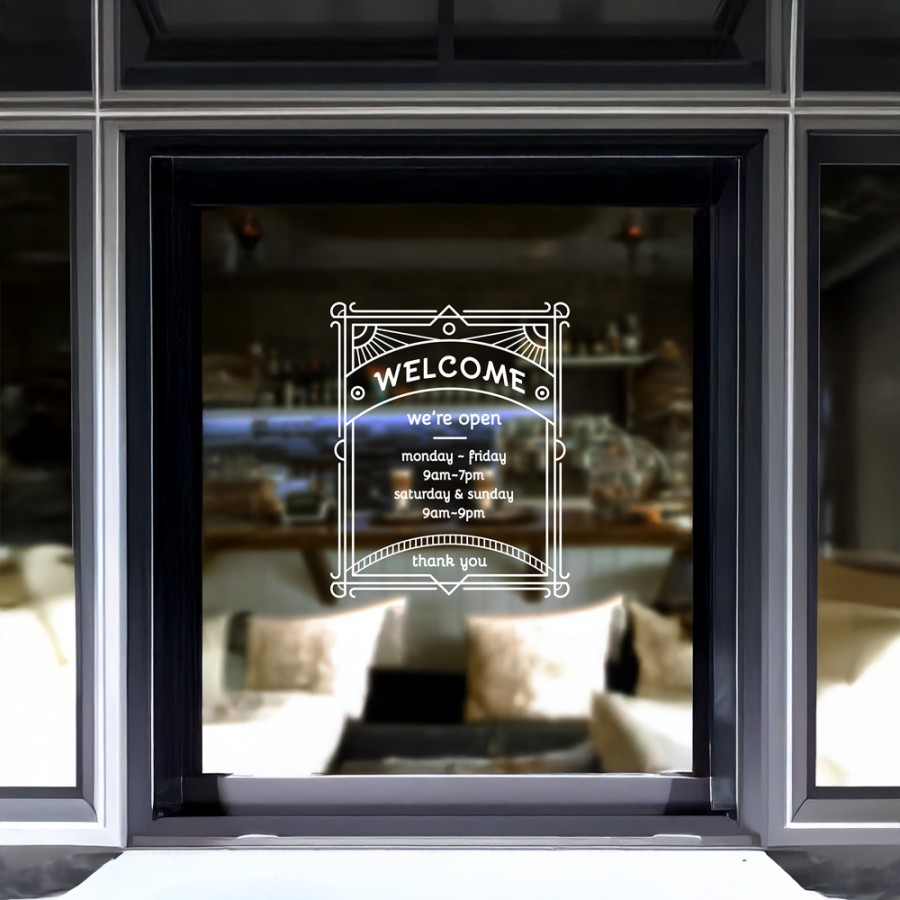 Frosted vinyl stickers provide privacy, style, and durability for windows.